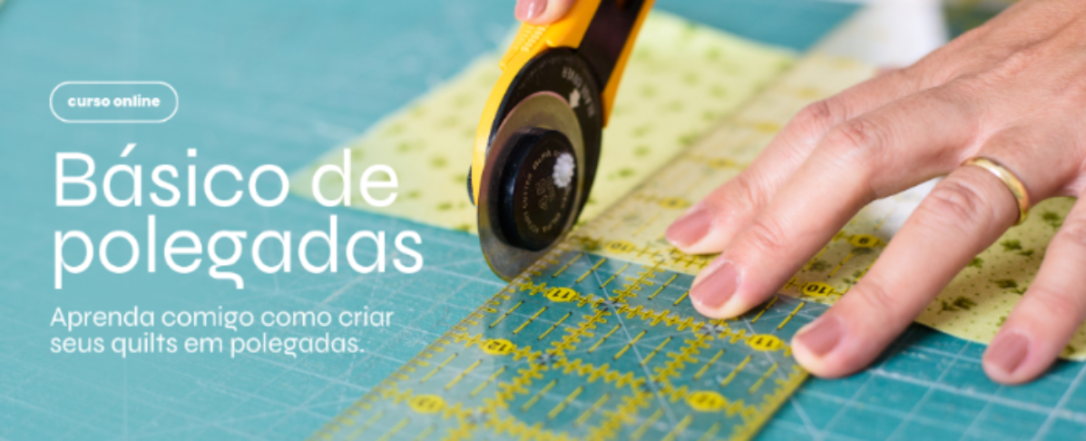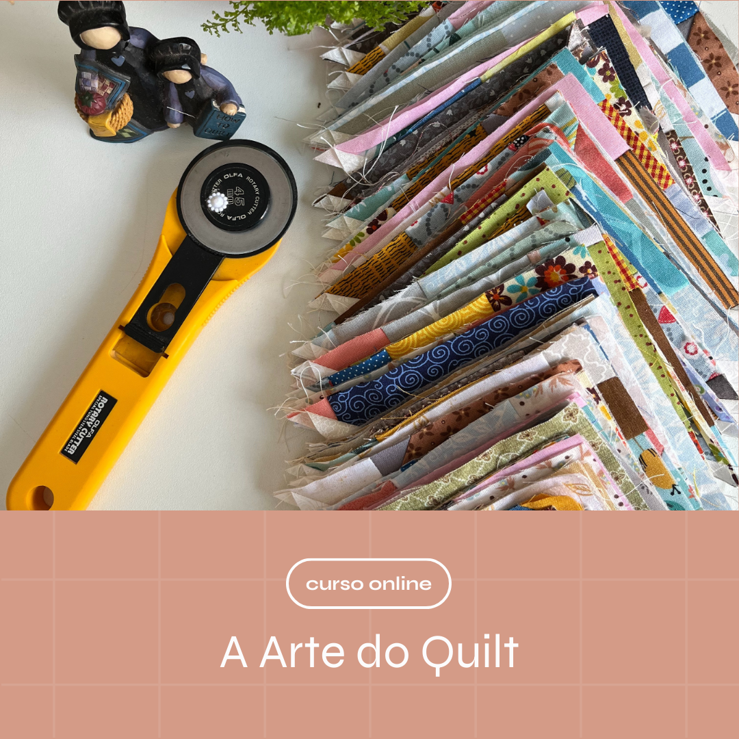 Tudo começa nesse curso. Curso rápido mas muito completo sobre como cortar tecidos e costurar em polegadas, exercícios práticos, história e cultura do quilt e execução de uma peça toda em polegadas!